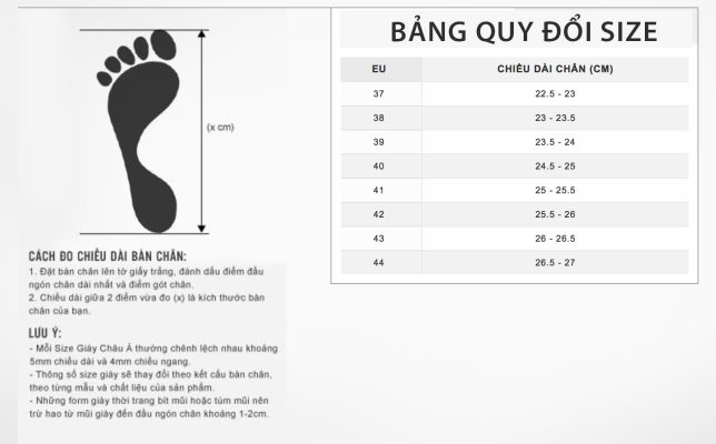 BẢNG QUY ĐỔI SIZE